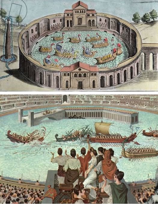 고대 로마에는 나우마키아(naumachia, 모의 해전) 전통이 있었다.