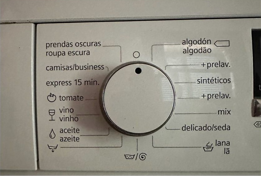 스페인/포르투갈에서 쓰는 세탁기인데, 아예 토마토, 와인, 올리브유, 등이 옷에 묻었을 때 쓰는 세팅이 준비되어있는 지중해 스타일 세탁기.