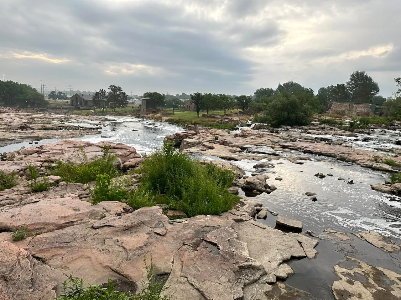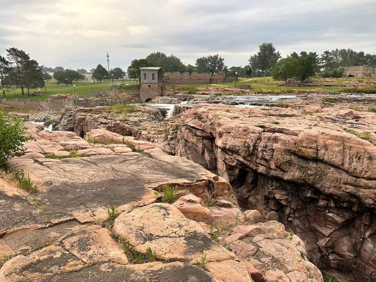 방문 열고 정확히 150미터 걸어가면 나오는 풍경. 규암으로 이뤄진 폭포. 한 백 년 전 수력발전소를 카페로 만든 곳도 있고, 초미니 그랜드캐년도 있고, 오리인지 학인지 모를 녀석들도 날아다니고.
