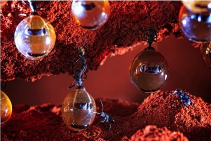 꿀단지개미. 꿀단지개미 중에서도 먹이 저장창고 역할을 하는 개미들. 어릴 때 선택돼 저장창고가 되기 위해 몸을 부풀려 꿀 등의 당분을 저장하고 더운 지역에서 뜨거운 흙에서 몸을 떨어뜨리기 위해 천장에 매달려서 지냄. 식량난이 오면 그때야 모아뒀던 걸 다시 내놓음. 개미 한마리가 포도알 크기가 됨. 서식지역에서는 진미로 간주됨.
