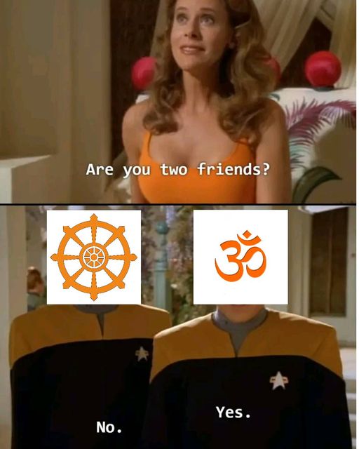 : "둘이 친구예요?" 불교: "아뇨." 힌두교: "네."