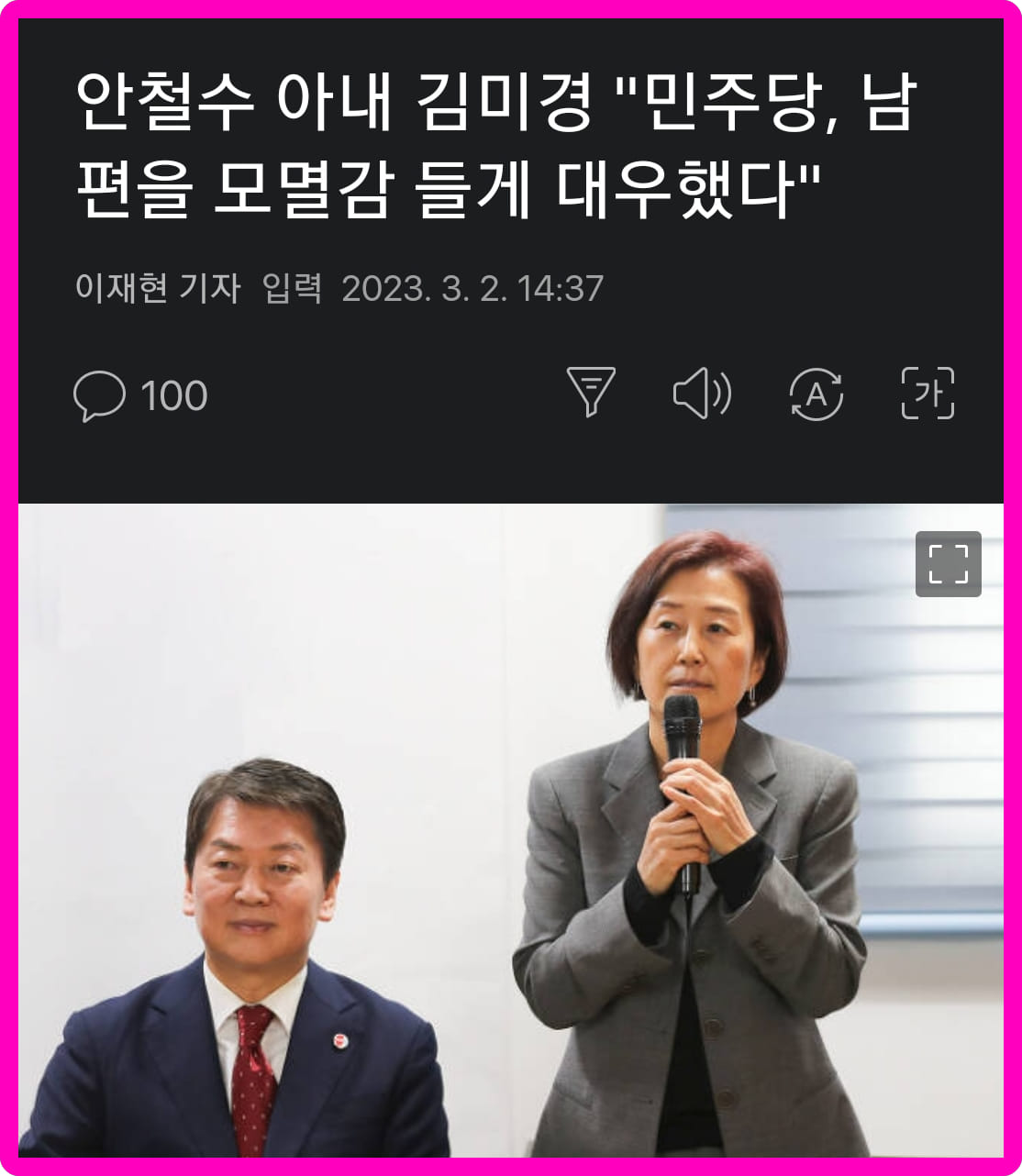 그게 아니고 안이 "여기 상석 어디야. 내놔."를 처음 시전한 곳이 민주당이었지. 그때나 그 이후로나 어디가서도 안통하는거고. 잘 모르는 사람이 불쑥 나타나서 나를 따르라해서 씹으면 모멸감을 준거고 평생 우리는 그 사람한테 빚진 건가? ㅎ 처음엔 신비주의로 잘 포장됐었는데 신비주의가 벗겨지고나니 남은 건 권위주의 뿐. 남의 말은 자신의 장부를 가진 검찰/윤 말이 아니면, 쉽게 말해 자기보다 세다고 생각되는 존재가 아니면 절대 들을 생각이 없는 사람. 그렇게 가장 기초적인 민주주의 개념도 없는 사람들도 정치를 자유롭게 할 수있는 국힘으로 가게 된 게 순리.