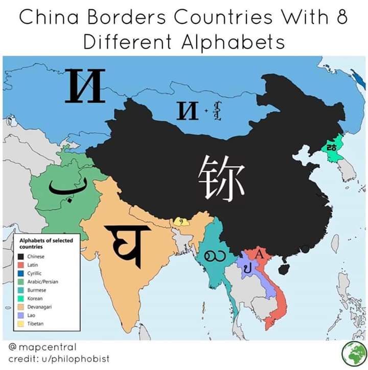 중국은 8가지 다른 문자체계를 쓰는 국가들과 국경을 맞대고 있다. … 이거 생각해보면 꽤 신기한 거. 이…
