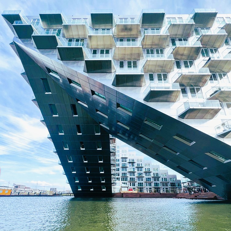 네덜란드 암스테르담에 있는 슬라우스하우스 아파트 Sluishuis Residential Building. 독특한 디자인 때문에 재미있는 사진이 많이 나오지만.. 사실 멀리서 보면 나름 평범.