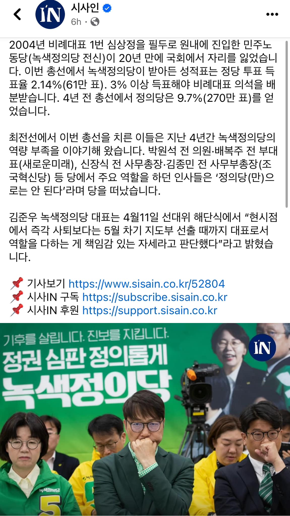 내 생각엔 당명이 문제임. 당명만 바꾸면 당의 운명이 바뀔 수도 있는 것. 당명에 “녹색” 부분을 “민주”로…