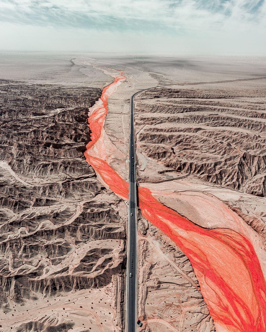 미쿡은 극지방에서 사막까지 정말 다양한 지형을 갖춘 엄청 큰 나라라 그랜드캐년, 옐로스톤 등 다양한, 한 번 보면 평생 생각나게 만드는 볼거리가 있지만, 우리 바로 옆나라 중국의 땅덩어리가 미국과 거의 같은 크기고 비슷하게 다양한 지형과 기후를 가지고 있다. 그리고 그 대부분의 장경은 아직 세계와 제대로 공유된 적이 없다. 중국의 고비 사막을 가로지르는 G315 고속도로.