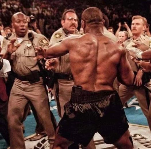 97년 이밴더 홀리필드의 귀를 물어뜯은 마이크 타이슨을 제압하려는 라스 베가스 경찰. 평소 반항하면 그냥 쏘면 되는 흑인만 상대하던 경찰이라 쏘면 안되는 부자 흑인을 어떻게 상대해야하는지 혼란스러워 하는 중.