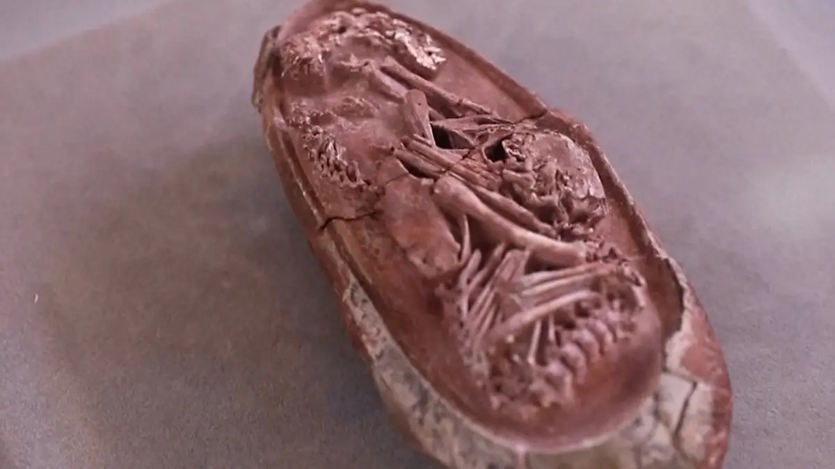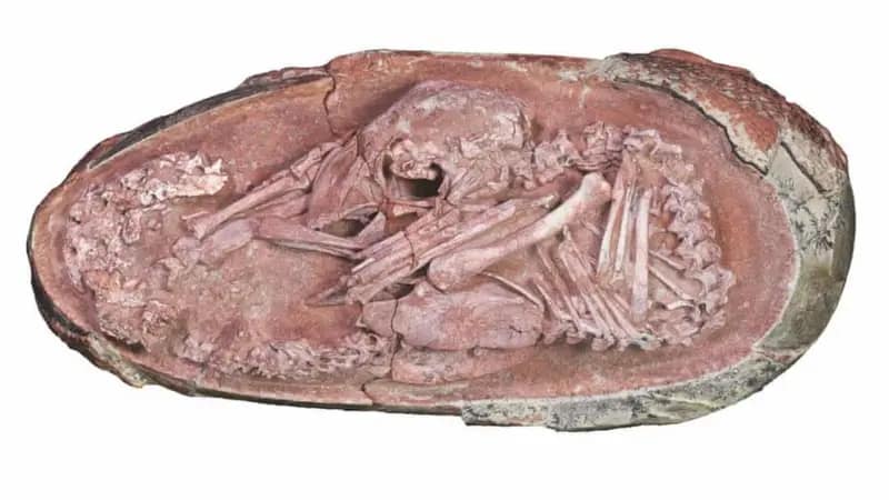 2000년에 중국에서 발견된 부화 직전 공룡 알 화석. 6600만년 된 화석. 27cm 길이.