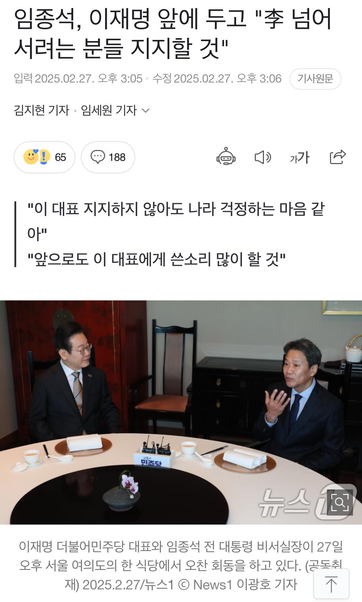 손절하기 전에 한 번 만나주는 매너남 이재명. 임종석이랑 만난 기사에도 임종석만 주절주절 떠들고 이재명…