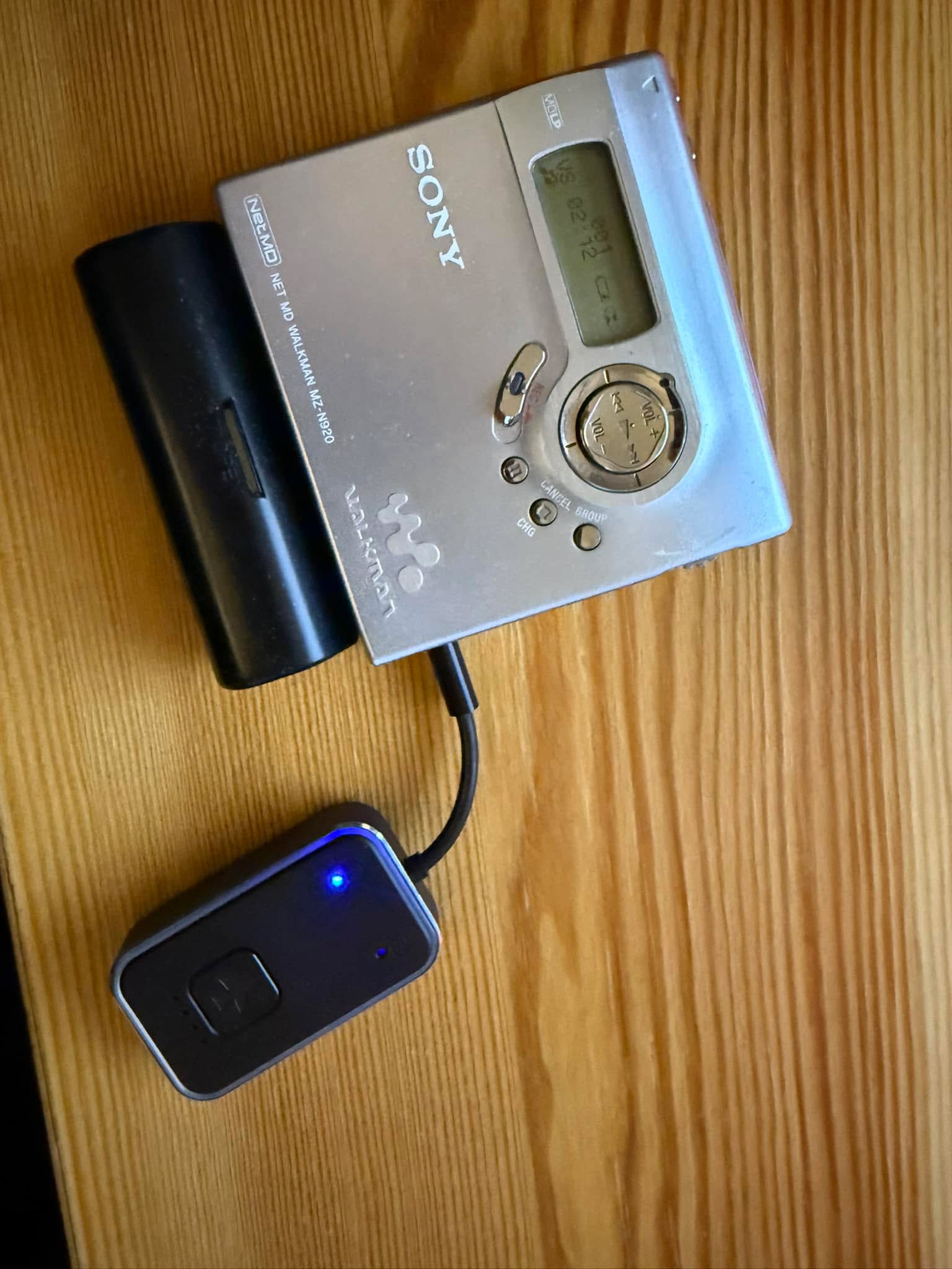 요렇게 해서 에어팟으로 MD 플레이어 쓰기. 수십개 중고로 산 미니디스크 중 만만한 건… 오츠카 아이군.