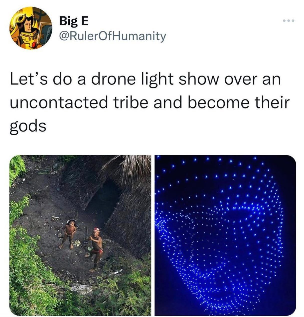 드론쇼를 준비해서 미접촉부족에게 가면 바로 신 대접 받을 수 있다