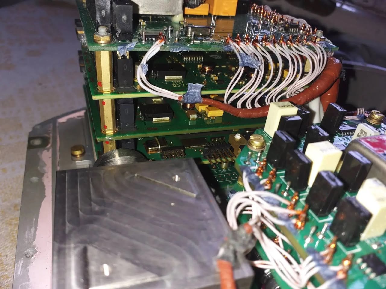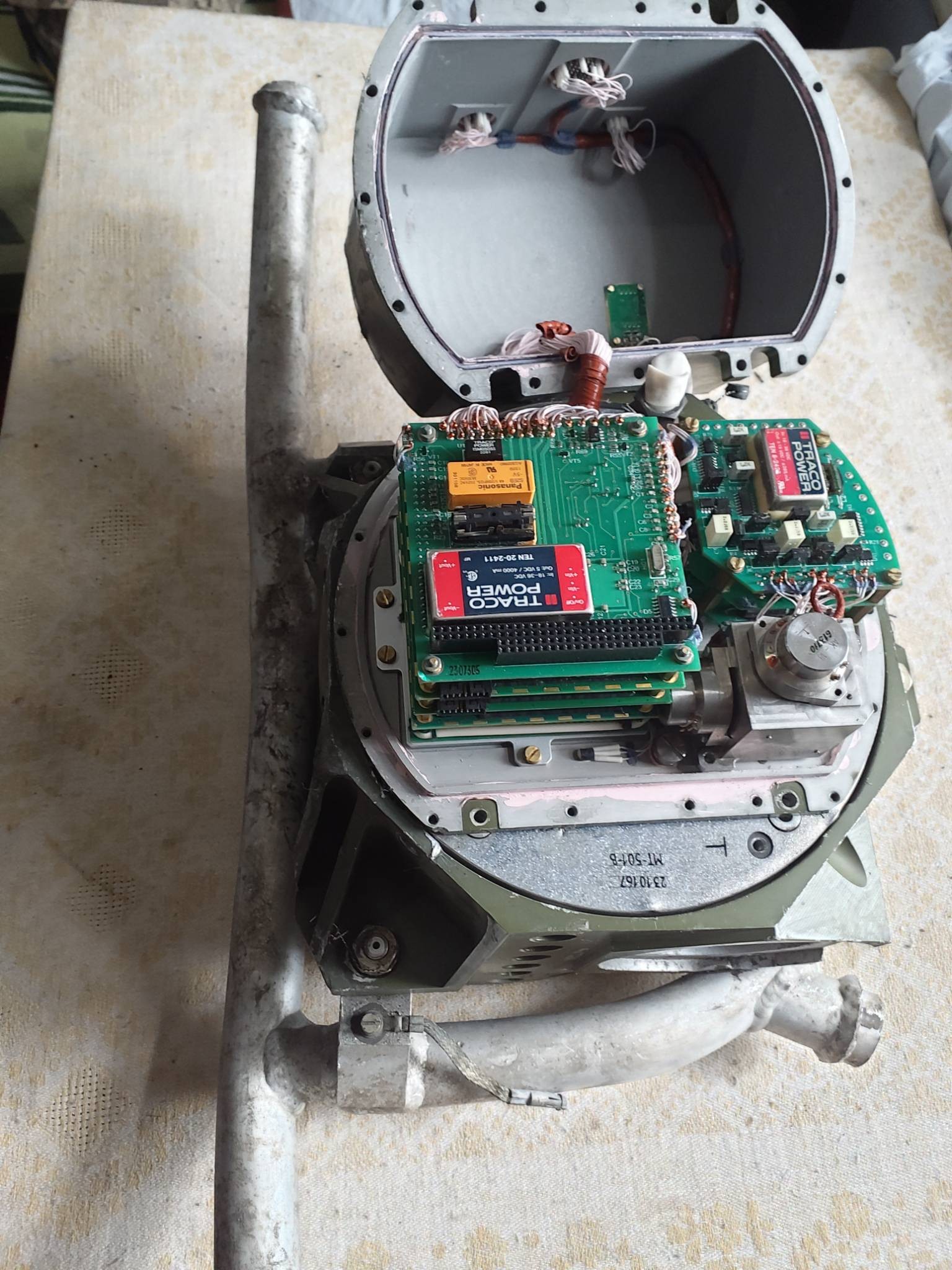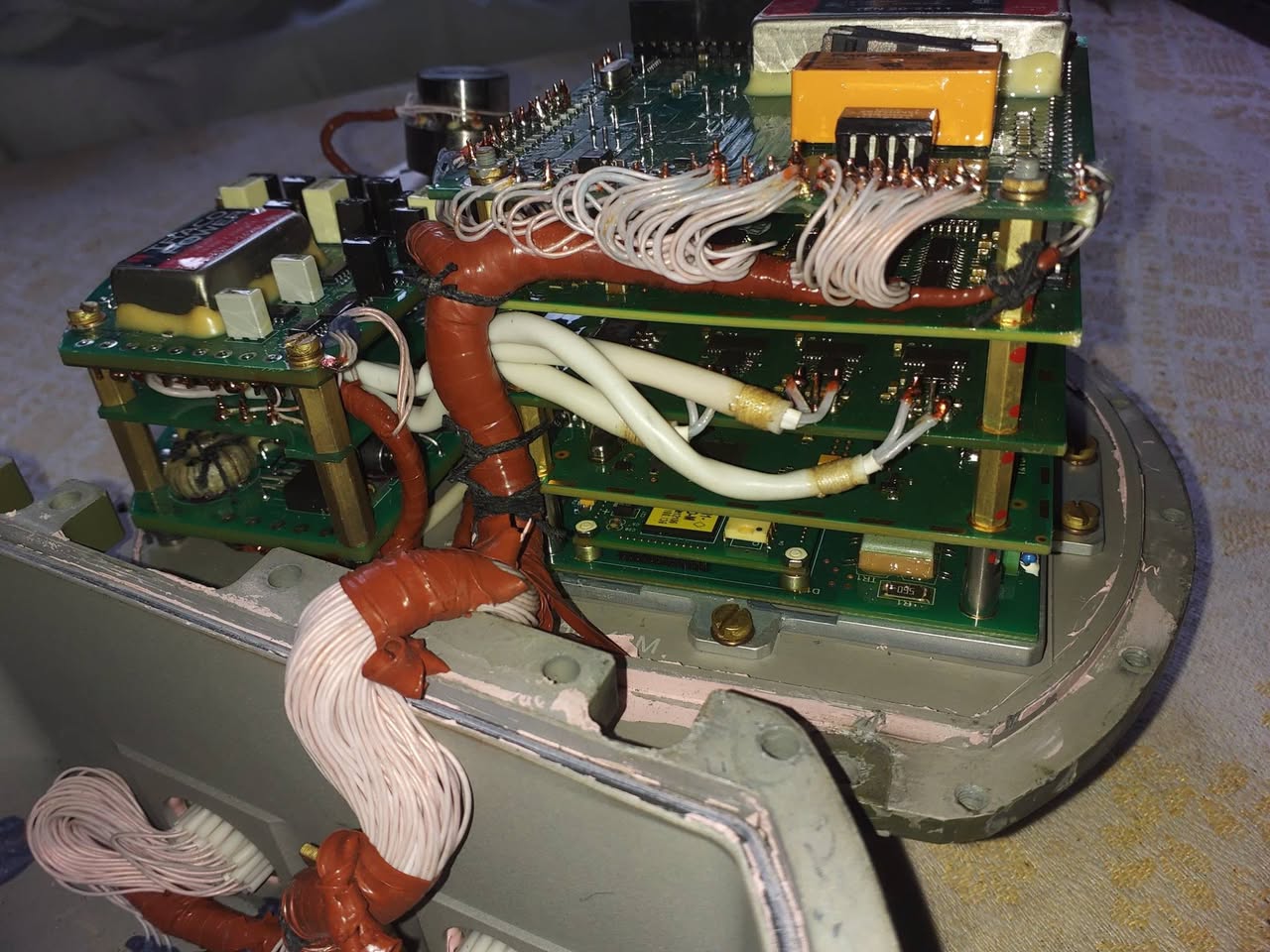 러시아 이스칸더 단거리 탄도 미사일에 들어가는 관제장치. PC/104같은 보드에 구할 수 있는 부품으로 만들어지는 모양. 코너에 알루미늄처럼 보이는 부품이 레이저 자이로스코프. 기판 두께도 엄청 두꺼움. 몇시간 동안 진동을 버텨줘야해서 두꺼운 판에 굵은 전선을 단단히 납땜하고 핫글루로 고정. 90년대 초에 개발된 미사일이라 복잡한 부품이 들어가지는 않고, 시간이 지나면서 구하기 힘들어진 부품은 신형 대체품으로 대신하는 과정을 겪었을 것으로 추정.