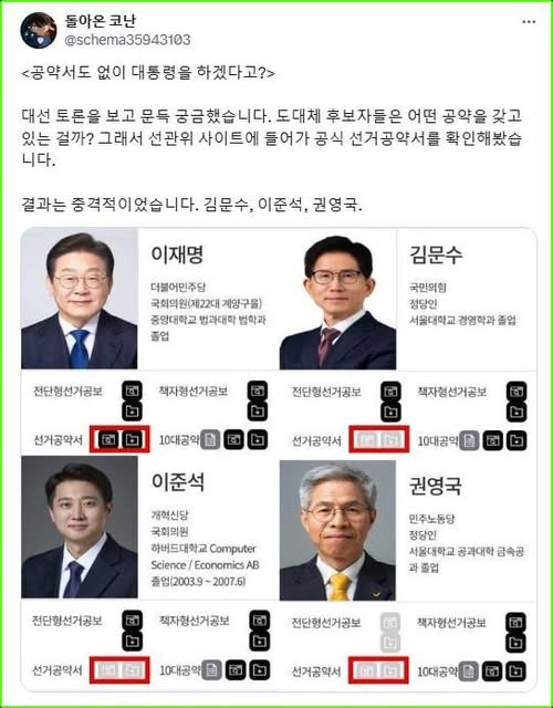 이준석의 고민은 생존 전략이다. 지지율이 10% 안팎이기 때문에 ‘완주’도 ‘단일화’도 모두 리스크가 있다. 그는 지금 ‘이재명 정부 하에서 어떤 포지션이 가장 오래 버틸 수 있는가’를 계산하고 있다. 1. 완주의 시나리오: 개혁보수의 쿼터 이준석이 10% 이상을 안정적으로 받고 마무리할 수 있다면 완주도 괜찮은 선택이다. 김문수도 어차피 3자 구도에서는 20% 안팎을 받을 것이고, 이준석도 그 아래의 젊은 개혁보수 공간을 차지할 수 있다. 보수에는 항상 유승민, 안철수와 같은 ‘비주류 개혁보수’에 대한 일정 지분이 존재했다. 이 틈을 파고드는 전략으로 오래 가는 것도 가능하다. 하지만 이준석의 최종 목표는 독자 정당 유지가 아니라 국민의힘 복귀다. 따라서 시점과 명분을 언제, 어떻게 잡을지가 핵심이다. 타이밍을 놓치면 개혁보수 이미지마저 소진되고, 양쪽에서 버림받는 결과가 될 수 있다. 2. 단일화 시나리오: 전술적 후퇴로 기반 재건 만약 스스로도 10%를 넘기기 어렵다고 판단하면, 현실적으로 단일화 후 국힘 복귀가 낫다. 캠프 운영비, 여론의 피로감, 조직력 부족 등 실질적 문제가 발목을 잡을 수 있다. 이럴 경우 단일화 협상에서 최소한 공천권 보장, 다음 총선에서 계파 의원 확보 등의 실리를 챙기고 돌아가는 게 좋다. 물론 또 약속이 깨지거나 약속했던 주체들이 사라지는 일도 발생할 수 있지만, 아예 아무 것도 약속받지 못하고 들어가는 것보다는 나으니까. 3. 명태균 특검 방어: 경선조작 혐의 방어를 위해서는 대선후보가 나을지, 국힘 최고위원이나 비대위원장이 보다 유리할지도 고민 중이다. 이 사안은 단순한 스캔들이 아니라, 공직선거법 위반 및 불법 공천 구조의 실체로 번질 가능성이 크기 때문에, 정치적 신분과 보호막 없이 맞서기에는 리스크가 너무 크다. 따라서 지금 개혁신당 하나 운영도 벅찬 이준석 입장에서는 대선후보로 계속 남는 것보다, 국민의힘 내부에 진입하여 체계적 방어에 들어가는 편이 전략적으로 유리하다. 성접대 의혹도 당대표 하기 훨씬 전에 제기 됐지만 국힘대표가 되고나서 본격적으로 고발되면서 어떻게든 방어하고 넘어가는데 성공했다. 대표가 아니었어도 공소시효 소멸로 방어 가능했을지는 알 수 없다. 확률상 경선조작 혐의도 국힘 대표 지위에서 방어하고 싶은 마음이 있을 수 밖에 없다. 4. 윤핵관 붕괴 이후: 윤핵관 세력이 점차 약화되고 있다면, 이준석이 당 밖에 있는 것보다는 국민의힘 내부에서 힘을 결집하고 공백을 노리는 것이 현실적이다. 안철수가 국민의당 대표 시절 독자적으로 존재감을 만들려 했지만, 어차피 사람을 끌어당기는 매력도 없고 결국 국힘과의 합당/단일화 이벤트로 합류해 내부에서 경쟁하게 됐던 것과 비슷하다. 그때 안철수가 민생당과 싸웠던 거나 이준석이 허은아와 싸웠던 거나 결국 같은 이벤트다. 그리고 박근혜 탄핵 때도 이준석은 지금과 똑같은 코스를 밟아 잠시 탄핵의 불똥을 피해 나왔다가 국힘으로 돌아갔다. 지금의 대선보다 훨씬 중요한 싸움은 차기 당권 경쟁과 공천권 재편 과정이다. 내부에 있어야 이 변화에 직접 개입할 수 있다. 5. 개헌 협상과 희소성 상실: 민주당과의 거래 창구는 닫혔다 개혁신당의 한때 존재 이유 중 하나는 개헌 정국에서 민주당과 협상해 생존 공간을 확보하는 전략이었다. 하지만 그것이 가능하려면 이준석이 이재명과의 대립각을 피했어야 했다. 지금은 정반대다. 그는 최근 이재명과 민주당을 직접 겨냥해 공격의 초점을 맞췄다. 이는 개헌 협상 가능성을 스스로 접었다는 뜻이다. 국힘이 약화되며 개혁신당의 캐스팅보트 가치는 떨어지고, 일부 보수 인사들이 민주당에 흡수될 조짐까지 보이는 가운데, 이준석은 오히려 반이재명 진영의 투사 역할을 택하고 있다. 토론회에서 김문수 대신 날카로운 공세에 나선 것도 같은 맥락이다. 이는 향후 국힘 복귀를 전제로, ‘보수 진영 내 충성 시연’의 성격이 강하다. 애매하게 중간에 서 있으면 아무 것도 얻지 못하니, 아예 반이재명 전선에 전념해 존재 가치를 증명하려는 선택이다. 6. 책사 정치의 한계: 플랫폼 없는 천재는 없다 이준석의 정치는 한마디로 ‘책사 놀이’였다. 지난 대선에서 ‘비단주머니’ 운운하며 모든 걸 아는 듯한 태도, 기사를 유도하고 여론을 주도하던 그 모습은 국힘이라는 대형 플랫폼이 있었기에 가능했던 연기였다. 그러나 개혁신당을 창당하고 나서 드러난 현실은 혹독했다. 실무 인력 부족, 조직 운영의 한계, 유치한 홍보물과 메시지, 무엇보다 결정적 국면마다 전략이 아니라 감정이 앞서는 모습이 반복되었다. 이준석은 지금 깨닫고 있을 것이다. “정치는 무대가 있어야 연기도 된다.” 플랫폼과 자원이 없는 상태에선 똑똑한 척도 설 자리가 없다. 결국 다시 돌아갈 무대는 사람과 돈이 있는 국민의힘뿐이다. —- 정리하자면, 이준석은 이재명과의 협상 여지를 닫고 국힘 복귀 후 반이재명 투사로 남는 전략을 택했다. 단일화는 시기의 문제일 뿐 거의 확정적이다. 그 이후는 다시 국힘의 권력 핵에 접근할 수 있느냐가 관건이다. 아니면 지금이라도 정신차리고 개헌 국면에 공을 세우며 