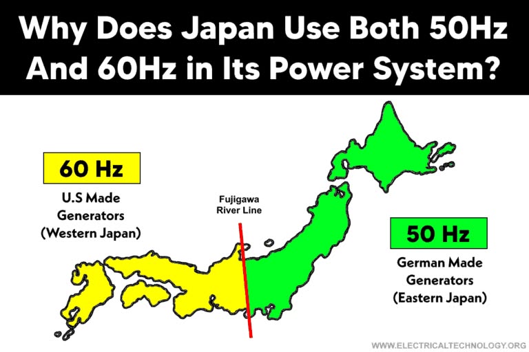 1880년대에 처음 전기 발전기를 도입한 일본에서 오사카는 미국 발전기를 수입하고 도쿄는 독일 발전기를 수입한 건 충분히 있을 수 있는 일이었다. 문제는 한국-미국처럼 60Hz 를 쓰는 오사카에서도 점차 전력망을 구축해나갔고, 중국-유럽처럼 50Hz를 쓰는 도쿄도 점차 전력망을 키워갔다는 거다. 결국 오늘날까지 서일본은 60Hz, 동일본은 50Hz라 호환이 되지 않는다. 도호쿠 지진 때 전력난이 발생해도 서일본에서 해줄 수 있는 게 별로 없었다 한다. 지금 교체하려면 발전기를 다 갈아야해서 비용이 비싸다는데, 시간이 갈 수록 교체 비용은 올라가기 때문에 아마 포기. 일본은 따라서 100v/50Hz와 100v/60Hz를 쓰고, 미국은 110v/60Hz. 유럽은 220-240v/50Hz. 한국은 미국처럼 110v/60Hz 쓰다가 승압해서 220v/60Hz.