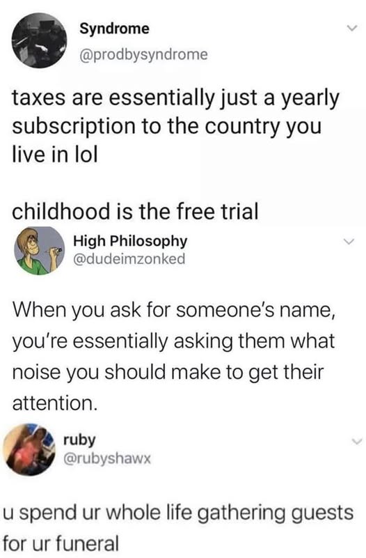"세금은 지금 사는 나라에 내는 구독료. 유년기는 무료체험기간." "누군가의 이름을 물어보는 건 그 동물이 어떤 소리에 반응하는지 물어보는 것." "사람은 평생 자신의 장례식에 올 친구를 모으다 죽는다."