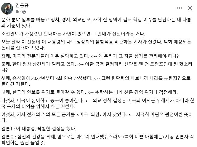 여기에 한국이 가야한다고? 우리가 왜 러시아 포위하러 가야하는데? 우리 러시아랑 사이 안 나쁜데? 러시아 뿐 아니고 중국도 때리자고 나토 파트너 그룹이라고 새로 만들어서 오라는 건데, 이건 중국/러시아와 척지기는 제대로 지는데 상호방위 혜택은 없는 이상한 그룹이다. 그리고 우린 중국 상대로 돈 벌어야하는데? 그리고 거기 가서 열심히 하면 정식으로 나토 멤버로 받아주나? 아니다. 멤버 필수 조건이 북!대!서!양!에 있어야 한다.