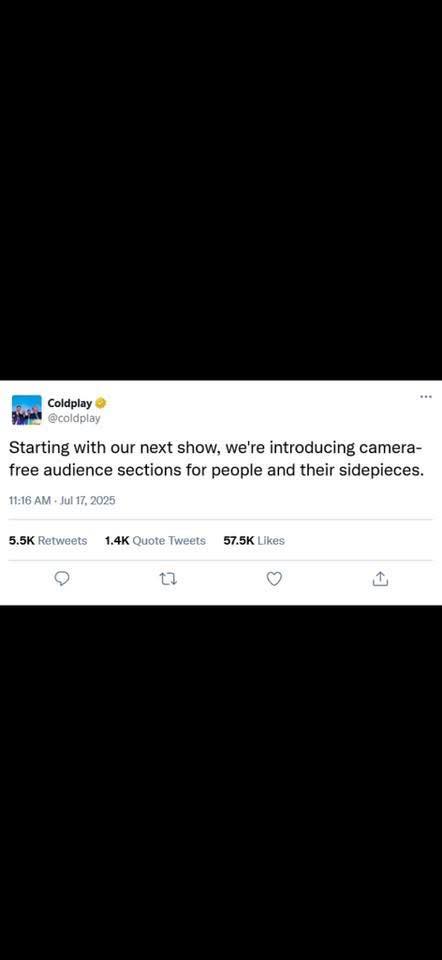 콜드플레이는 “앞으로 우리 콘서트에서는 관객분들과 불륜상대들이 편히 즐길 수 있게 카메라가 없는 섹션을 준비하겠다“고 답장.
