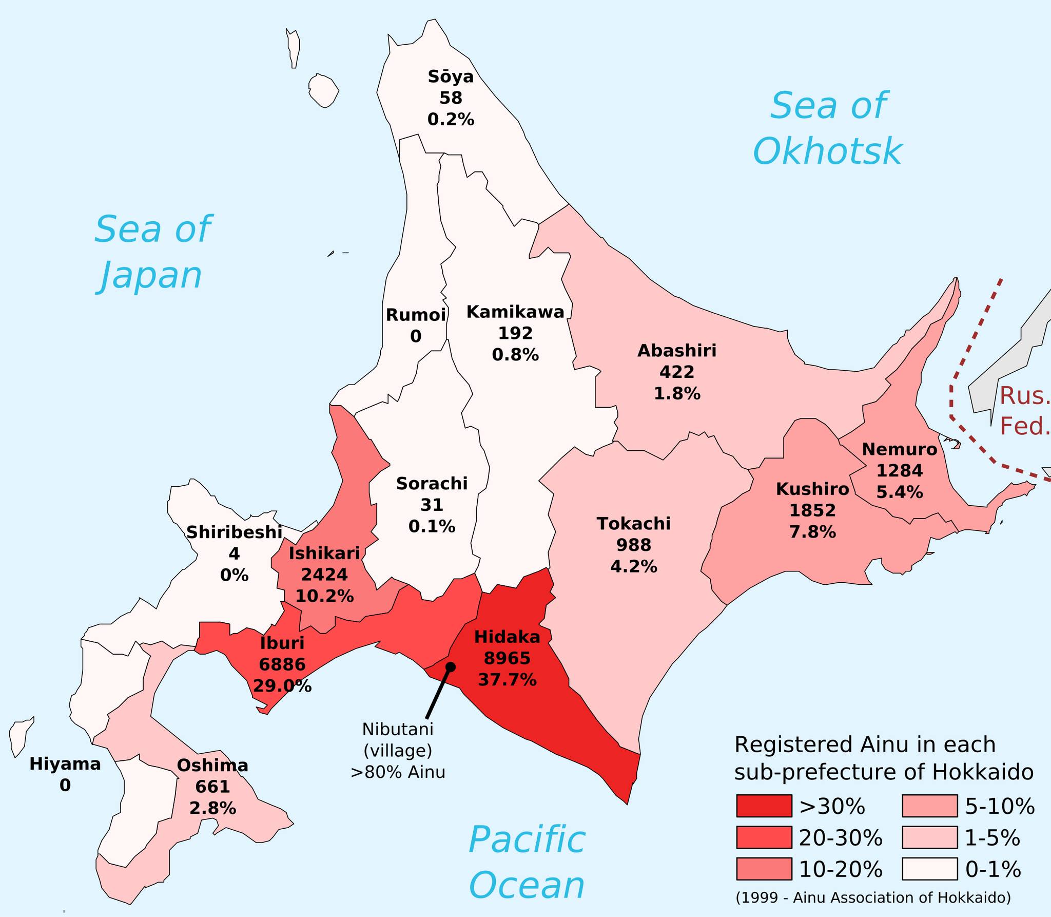 아이누는 일본 열도 북부, 특히 홋카이도와 쿠릴 열도, 사할린 일대에 오랜 세월 살아온 토착민이다. 언어적으로도 일본어와 계통이 완전히 다르며, 유전적으로도 혼합 전에는 뚜렷한 차이를 보였다. 이런 이유로 일본 주류 사회는 오랫동안 아이누의 존재를 회피하거나 집요하게 지우려 했다. 동화 정책과 제도적 차별, 문화 말살은 정체성 붕괴로 이어졌고, 지금은 아이누어를 유창하게 구사할 수 있는 이가 거의 없다. 홋카이도는 1869년 메이지 정부에 의해 정식으로 '홋카이도'라 이름 붙여지며 일본 영토로 편입돼 식민화됐고, 그 이전에는 아이누 인구 8만명의 에조(蝦夷)라 불리던 자치적 문화권이었다. 이 지역이 일본의 오래된 본토가 아니라는 사실은, 아이누가 독자적인 언어와 문화를 가진 토착민이라는 점과 함께, 일본이 북방 영토에 대해 주장하는 역사적 정통성 논리와 충돌하기 때문에 정치적으로도 사회적으로도 꺼려지는 불편한 진실이다. 아이누가 현대 일본인과 공존해서는 곤란하고 옛 조상 중 하나 쯤으로 남아있어줘야 했다. 조직적으로 체계적으로 말살된 아이누 인구는 18세기 8만명에서 19세기 1.5만명으로 줄었다. 아이누어도 1869년부터 계속 금지됐다. 1997년에야 아이누어 금지 정책이 종료됐고 이 때는 이미 화자 수가 100명 이하로 떨어진 뒤였다. 뒤늦게 부흥운동, 진흥정책 등이 이야기 됐지만 지금은 아이누어를 할 줄 아는 사람이 아예 없다. 구직, 혼인을 위해서 아이누 출신임을 숨기는 사람이 많다. 여기에 러시아가 비슷한 시기에 북방에 진출해 사할린과 쿠릴을 두고 일본과 충돌했기에, 일본 입장에서 아이누가 여전히 분명히 존재한다는 사실은 곧 홋카이도가 정통 일본 땅이 아니라는, 즉 일본 열도 본토를 구성하는 규슈·시코쿠·혼슈·오키나와·쓰시마·이키·사도가 포함된 전통적인 '오기칠도(五畿七道)' 체계에도 포함되지 않는다는 약점으로 연결된다. 결국 아이누 정체성과 북방 영토의 짧은 일본역사는 정치적으로 연결돼 있으며, 일본은 이 둘을 동시에 부정하거나 은폐하는 쪽을 택해 왔다.