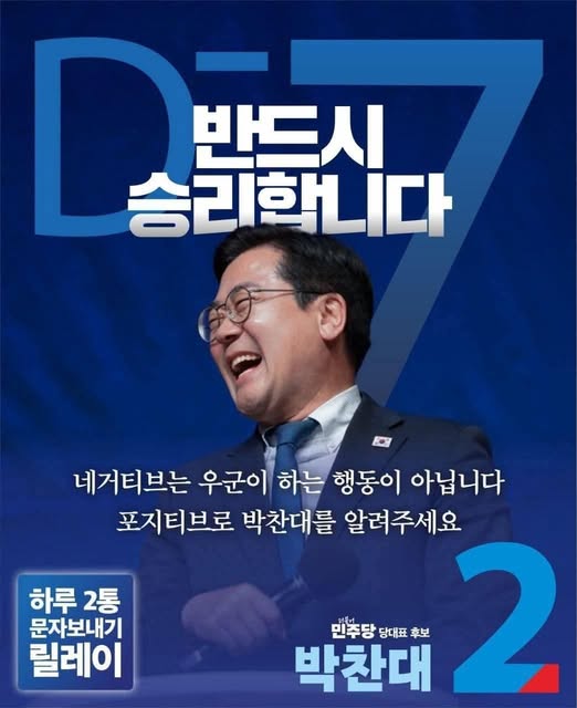 이 정도로 부족할 거다. 왜냐하면 지금 정청래를 물어뜯고 있는 것들은 박찬대 팬이 아니라 문재인, 조국, 모두 물어뜯던 사람들이 또 혐오 대상으로 정청래를 찾은 거라서. 알리바이를 위해 박찬대를 외치고 있지만 사실 박찬대의 승리에 별 관심없다. 박찬대가 "포지티브 해주세요" 한다고 듣지 않는다. 그 사람들 이재명 후보가 총선과 대선 때 조국혁신당 상대로 싸우지 말아달라고 두 번이나 공개 발언해도 안 듣던 사람들이다. 당에도, 이재명에도 관심없다.