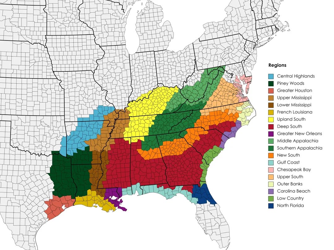노스캐롤라이나는 작은 땅덩이에 비해, 혹은 겨우 300년 정도 밖에 안된 그 지역 영어 사용 역사에 비해 방언의 다양성이 놀라울 정도로 크다. 서쪽으로는 애팔래치아 산맥이 자리 잡아 스코틀랜드와 아일랜드 이민자들의 영어가 뿌리내렸다. 여기서는 고유의 억양과 단어들이 살아남아 “Appalachian English”라 불리는데, 리듬감 있는 억양과 보수적인 어휘 보존이 특징이다. 오랜 고립 덕분에 마치 언어의 박물관 같은 역할을 하고 있다. 반대로 동쪽 아우터뱅스 지역은 바다로 둘러싸인 섬과 해안 공동체에서 독특한 “Hoi Toider” 억양이 발달했다. 낚시와 뱃일을 생업으로 삼던 이들의 말투는 오랜 기간 내륙과 단절되며 영국 서남부 억양이 살아 있어, 오늘날에도 외부인이 들으면 마치 다른 나라 말처럼 들릴 정도다. 중부의 ‘리서치 트라이앵글(랄리, 더럼, 채플힐)’은 학계와 첨단 산업 종사자들이 몰리면서 전형적인 남부 억양이 약화되고 있다. 전국 각지에서 모인 연구자와 엔지니어들이 표준 영어에 가까운 발음을 쓰면서, 이 지역은 노스캐롤라이나 안에서도 언어적으로 가장 ‘중립적’인 곳으로 변해가고 있다. 역사적으로 보면, 산악지역은 스코틀랜드-아일랜드계, 해안은 영국 해양도시 출신 이민자, 내륙은 플랜테이션과 도시화의 영향을 받아 다른 색을 띠었다. 여기에 최근 수십 년간의 인구 유입이 더해지며 방언의 차이는 더욱 뚜렷하거나, 반대로 희석되기도 했다. 특히 노스캐롤라이나 개척자들이 서쪽으로 이동해 테네시 개척에 참여하면서 그들의 방언이 그대로 이어졌다. 애팔래치아 산맥을 따라 이어진 정착촌들은 서로 밀접하게 연결되어 있었고, 같은 스코틀랜드-아일랜드계 혈통을 공유한 정착민들이 유사한 억양과 표현을 퍼뜨렸다. 그 결과 테네시, 켄터키, 웨스트버지니아 등지의 산악 방언들은 노스캐롤라이나 서부 방언과 매우 비슷한 특징을 보인다. 예를 들어 단어 끝의 -ing를 -in’으로 발음하거나, ‘y’all’을 기본 복수 인칭 대명사로 쓰는 습관은 이 지역 전반에 퍼져 있다. 더 나아가 이 같은 개척의 흐름은 오자크 산맥 지역까지 이어졌다. 오늘날 아칸소와 미주리 오자크 지역은 문화적으로도 애팔래치아와 닮은 점이 많다. 실제로 초기 개척자 상당수가 노스캐롤라이나·버지니아·테네시 산악지대 출신이었기 때문에, 언어적으로도 공통성이 뚜렷하다. 그래서 오자크 영어 역시 ‘산악 방언(mountain dialect)’으로 묶이며, 애팔래치아 영어와 매우 비슷한 발음, 어휘, 문법적 특징을 공유한다. 오자크 지방의 전통 음악이나 민속도 애팔래치아와 크게 닮아 있는 것은 이런 개척사적 연속성 때문이다. 결국 노스캐롤라이나의 언어적 풍경은 한 주의 경계를 넘어서 남부 내륙 전역에 영향을 미쳤다. 테네시와 켄터키는 물론, 멀리 오자크 산맥까지 같은 뿌리를 가진 말씨와 생활양식이 확산되었고, 이는 오늘날에도 여전히 들을 수 있는 독특한 산악 영어의 전통으로 이어지고 있다. 또 동시에 노스캐롤라이나주 내부 안에서도 확연히 다른 다양한 방언을 오늘날까지 유지하고 있다. 방언의 백화점이라 할 만하다.