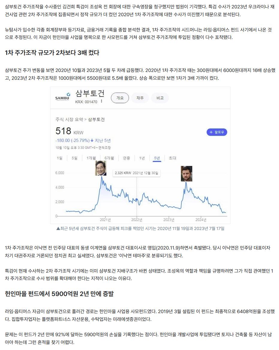대장동 건이 얼마나 황당한 사건이었냐 하면… 1. 2009년에 이명박 때 도시개발법 개정으로 성남 대장동 개발 추진했다. 내 개인적으로는 이명박이 이 사업에 관심이 있었던 걸로 추측한다. 2. 근데 민간개발로 천문학적 돈을 챙기려던 계획이 2010년에 이재명 시장이 취임하면서 무산. LH는 이재명이 추진한 공영개발에서 철수하며 사업 무산시켰다. LH 결정 배후에는 이명박의 발언이 있었다고 한다. 3. 박근혜 때 2014년 민관합동 방식으로 전환해서 추진. 화천대유부터 내가 보기엔 곽상도 최순실이 개입된 것 같은데 확실한 증거는 모르겠다. 4. 여기서도 이재명이 결국 추가로 5503억 성남시로 회수. 성남시는 대장동 개발로 현물기부까지 해서 1조원 넘는 이익을 봤다. 5. 이 2기 개발 팀에 자금이 2015년 감옥에 있던 최태원의 여동생 회사 킨앤파트너스를 통해 500억 가까이 투입되고 부산저축은행 PF 쪽 공적기금도 들어간 것 같다. 6. 최태원은 같은해 8.15 특별사면으로 출옥. 7. 2021년부터 이낙연과 윤석열이 이걸 이재명의 범죄라고 주장하며 사실 왜곡. 국힘 계열이 정말 많이 연루된 건이지만 사즉필생 정신으로 모든 언론과 모든 세력을 다 동원해서 왜곡하고 또 왜곡했다. 이낙연과 윤석열의 노력으로 2022년 대선 뒤집기 성공했다. 이재명과 최강욱은 말 한마디로 기소됐지만 이낙연 윤석열은 대장동 관련 거짓말 하는데 거리낌이 없었는데, 어차피 누가 고발해도 검찰이 수사하지 않을 거라는 자신이 있었던 걸로 보인다. 8. 이낙연은 토건사업하는 집안이고 윤석열은 대장동 개발에 들어간 부산저축은행 PF 대출을 수사하지 않아 공적자금을 꾼들이 가지고 놀 수 있게 해준 2011년 부산저축은행 수사 주임검사로, 윤석열 아버지 집을 대장동 업자 김만배 누나가 사줬다. 우연일 뿐이라고 주장했다. 9. 더 사실관계가 나와야 알겠지만 개인적으로는 이명박, 박근혜, 최순실, 윤석열 다 한 번 씩 침 묻힌 대장동이라고 생각한다. 이런 저런 검사들과 저쪽 최고 권력자들이 다 연루된 이권사업이고 이런 부동산 개발이 저 진영 주요 수입원인데 여기에 재를 뿌리며 공공개발의 모범을 보인 게 이재명이었다. 그 사이에 지들끼리도 배신과 약탈이 난무했고. 대장동만 봐도 왜 저것들을 싹 치워야 하는지, 왜 그 적임자가 이재명이었는지, 왜 그렇게 암살 시도가 난무했는지 알 수 있다.