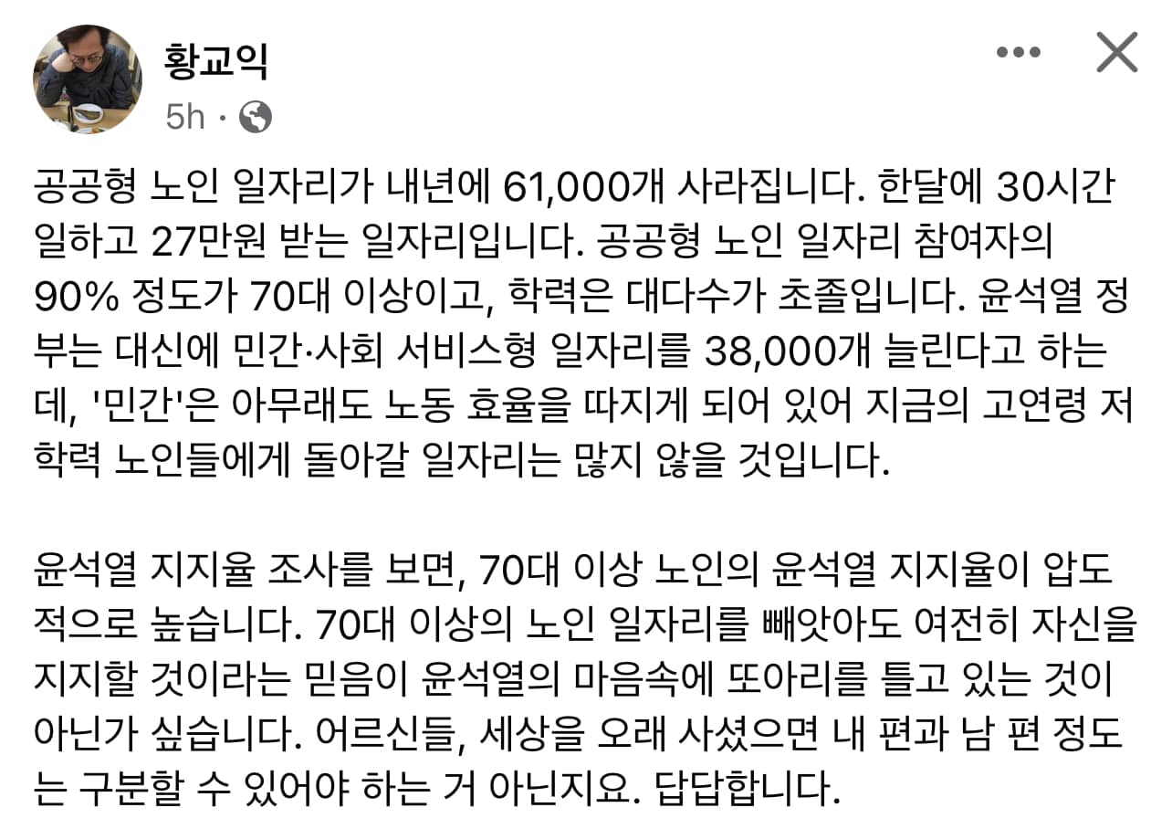 어차피 윤 몰아내고 다 복구시켜놓아야하는 것들인데, 물론 없어진 일자리가 그대로 다시 복구되긴 힘듬. 기존 업무는 그 사이 다른 방식으로 해결됐을 거고, 새로 일을 맡은 사람들에게서 또 일을 빼앗게 되니까. 해결방안은 많지만 전부터 생각하던 건, 전국에 도서관들을 낮 운영시간이 끝난 뒤에도 개방하는 것. 갈 곳 없어서 까페나 찜질방 가야하는 청춘들은 거기 모여서 밤새 대화를 하건 토론을 하건 야학을 하건 할 수 있게. 관리자는 노인 일자리로해도 될 것 같음. 이런 거 아니더라도 이재명 대표도 뭔가 멋진 구상이 있을 듯. 전화위복, 위기는 기회라는 말이 괜히 있는 게 아님.