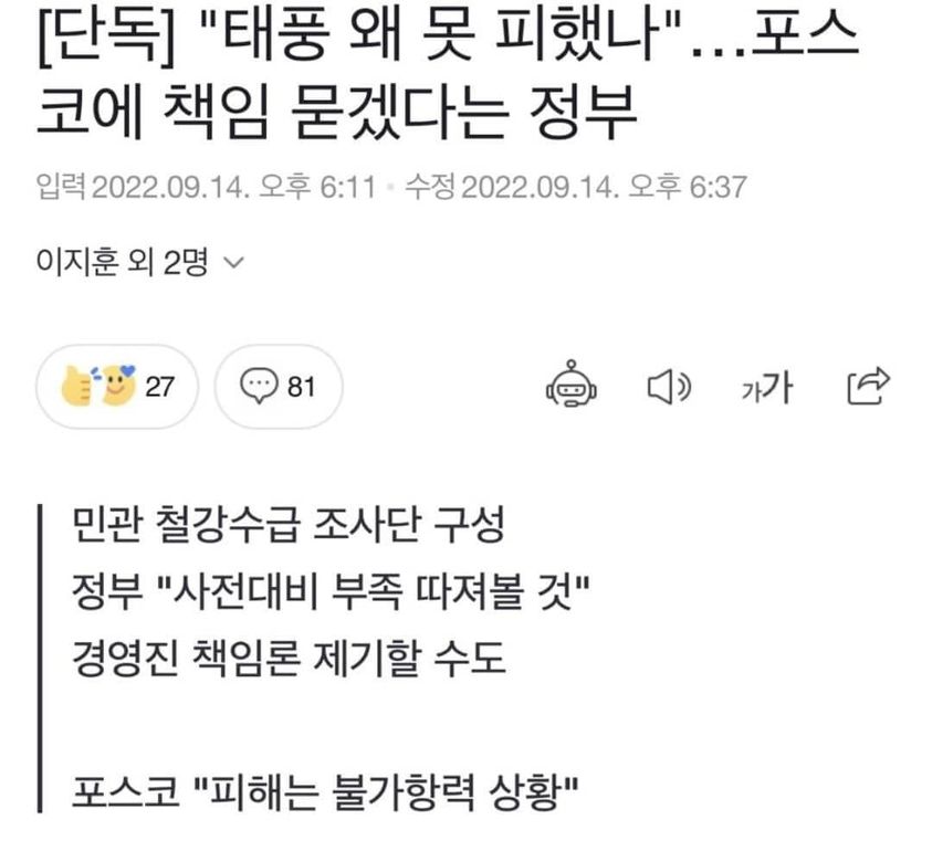박근혜가 세월호 유가족들 사찰한 거랑 같은 맥락. 피해입은 게 죄가 아니라 그 피해가 윤 지지율에 악영향을 주는 게 죄. 포스코 가족들, 포항 분들도 슬슬 횃불을 올릴 때가 됐지.