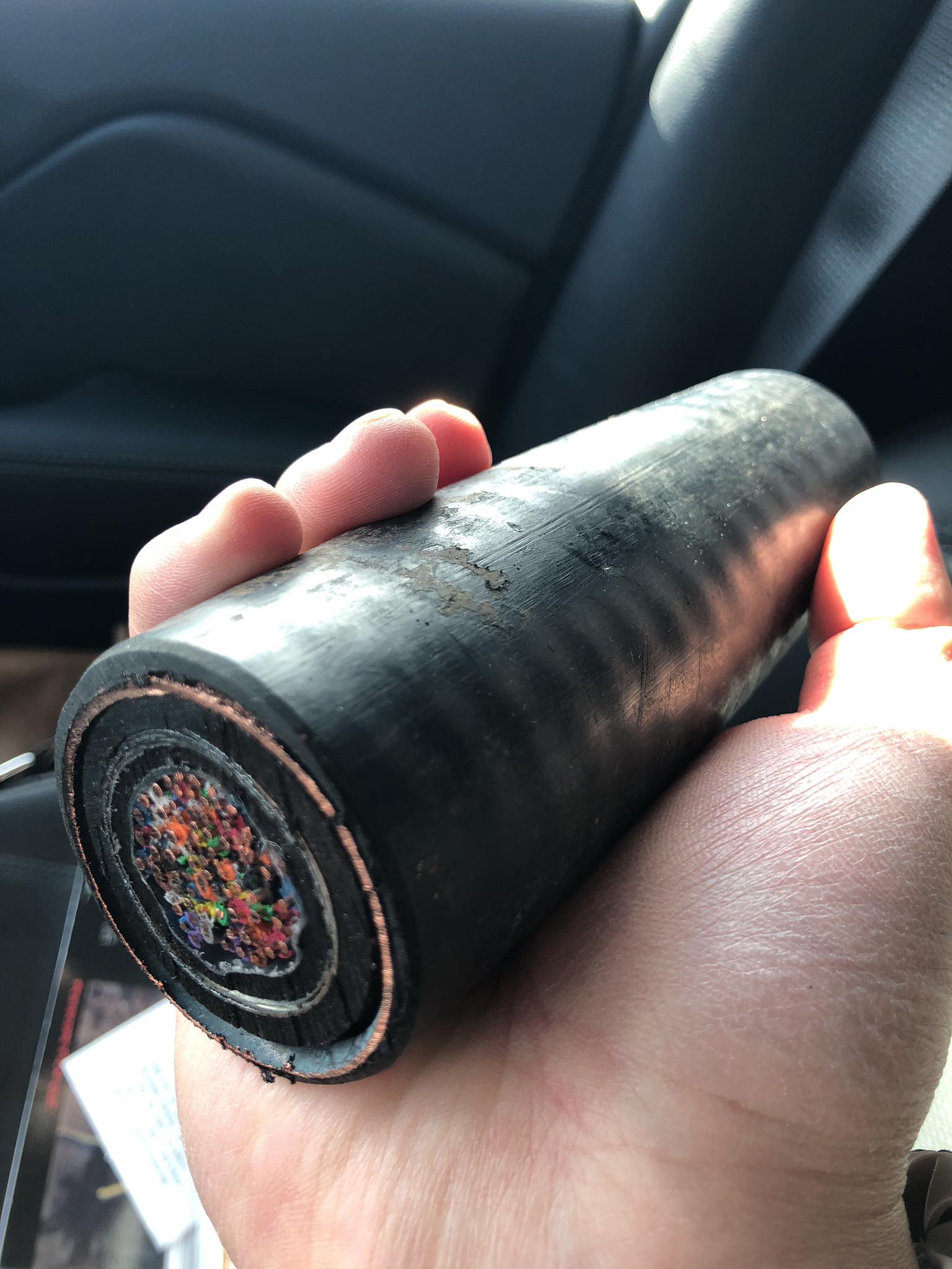 This space geek could not resist. I bought a piece of actual underground cable used to carry launch commands for Minuteman silos here in South Dakota. Try splicing that with electrical tapes. #SpaceGeek
