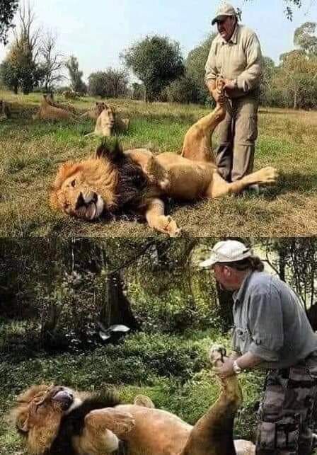 남아프리카공화국의 브리턴 알렉스 라렌티 씨는 매일 사자들에게 발마사지를 해주는데, 이제는 사자들이 미리와서 줄서서 기다리다 순서되면 마사지 시작하기도 전에 바로 누워서 헬렐레 하기 시작한다 함.