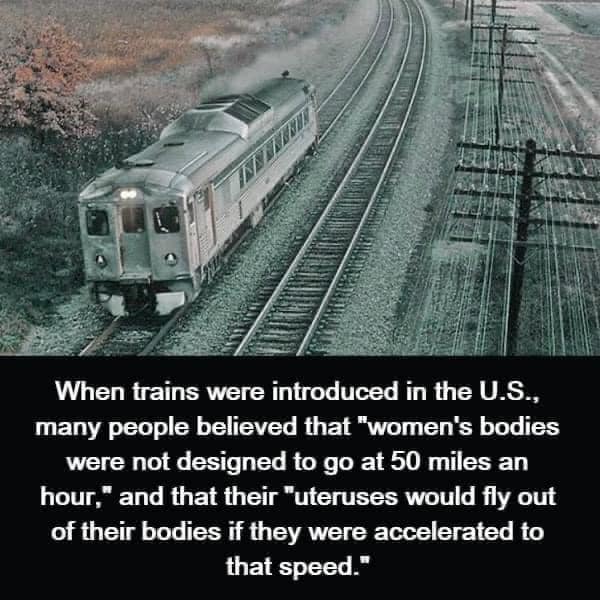 미국에 처음 기차가 도입됐을 때는 “여성은 타면 안된다. 여성의 몸은 그렇게 빠른 속도로 움직이도록 만들어져 있지 않아서 자궁이 튀어나올 수도 있다” 같은 주장이 많았다. 재미있는 건 공상과학 스페이스오페라의 창시자 EE Doc Smith가 1948년부터 발간한 렌즈맨 시리즈에서도 첫 무관성 추진기(inertialess drive)가 발명됐을 때는 여성들은 타면 큰일나는 걸로 나온다. 그냥 여성은 계속 안되는 게 아니라 처음 발명됐을 때만. 개발이 계속되면서 이 문제가 해결 됐다는 설정. 렌즈맨이 되는 조건에도 여성은 그냥 안되는 걸로 설정돼 있다. 설명까지 붙이는데, 열등해서 안되는 게 아니라 렌즈가 없어도 이미 충분히 완벽한 존재이기 때문이라는 황당한 설정. 이것도 나중에 후속편에서 예외가 생기고. 미국은 1974년에 신용기회균등법(Equal Credit Opportunity Act)를 제정해서 여성들이 혼자서도 은행계좌를 열수 있도록 은행들을 강제해야했다. 그전까지는 남편 서명 없이는 여자 혼자 계좌를 열려하면 은행이 거부했다. 항상 여성을 보호하는 척하며 눌러놓는 게 의도였던 것 같다.