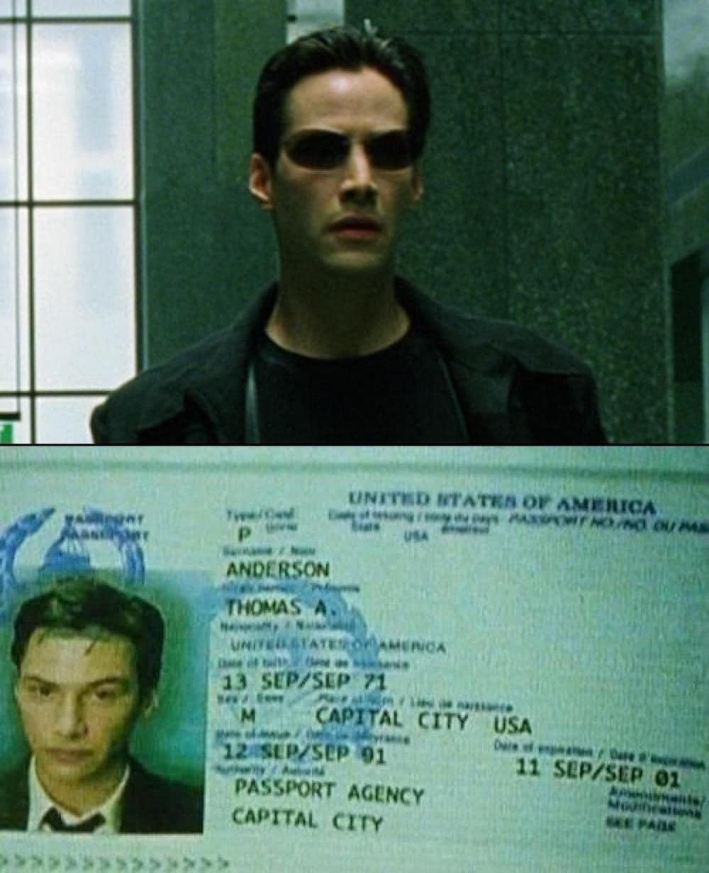 1999년작 [매트릭스]에서 니오의 여권 만기일은 2001년 9월 11일.