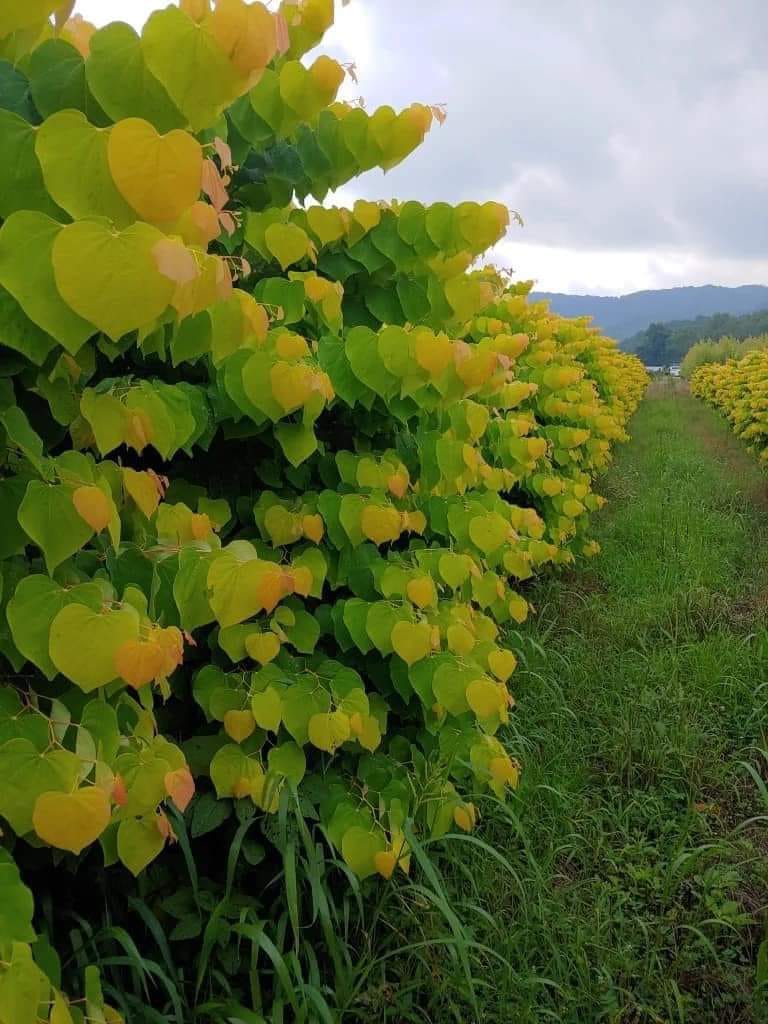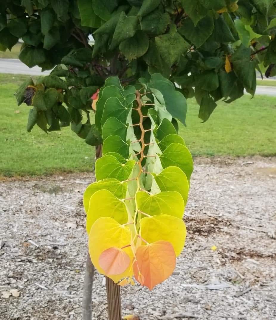 라이징 선 레드버드 Rising Sun Redbud 박태기나무. 잎이 줄서서 기다렸다가 단풍이 듬.